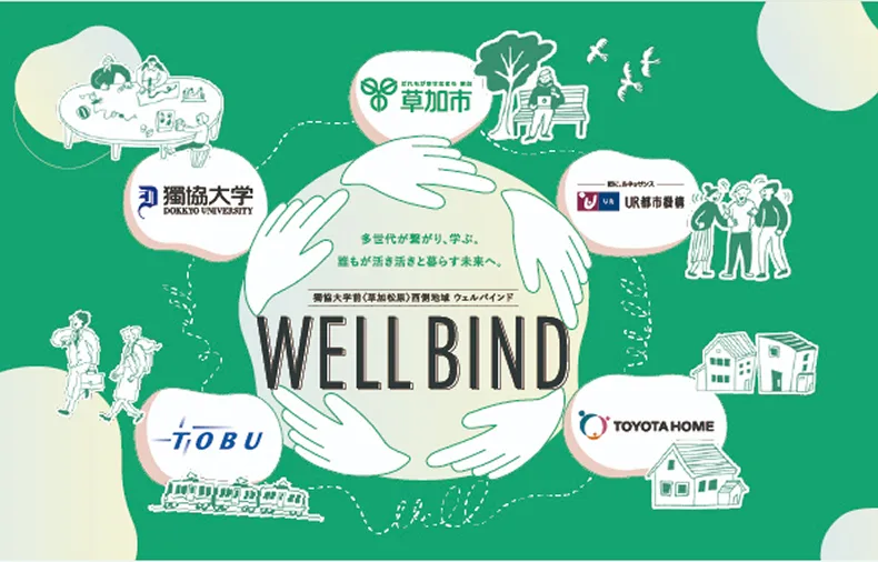 東武鉄道は、埼玉県草加市、獨協大学、独立行政法人都市再生機構東日本賃貸住宅本部、トヨタホーム(株)の5者で埼玉県草加市の獨協大学前<草加松原>駅西側地域における産官学連携によるまちづくりについての協定を締結し、多世代が繋がり、学び、誰もが活き活きと暮らせる未来を育む「WELL BIND(ウェルバインド)」をコンセプトに各社が連携を図っています。