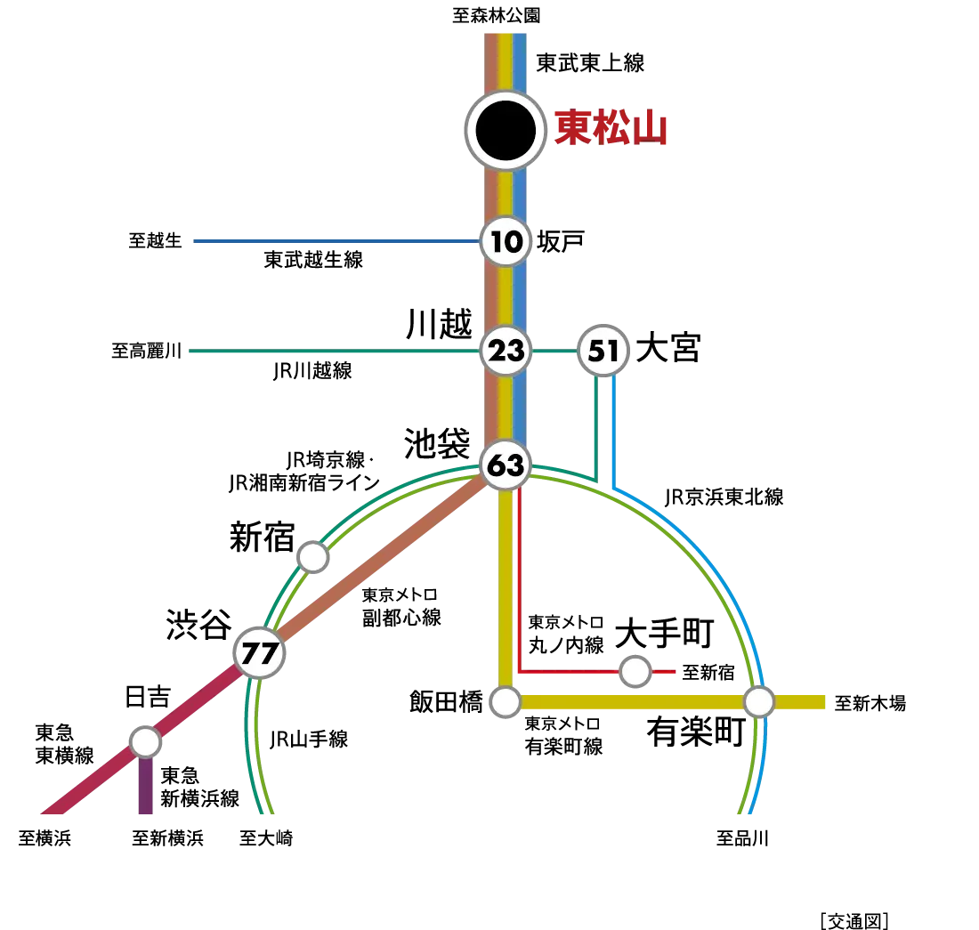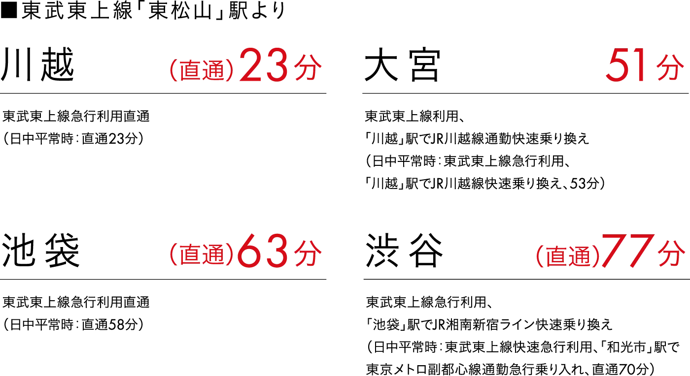 「市民病院」や市の名所である「東松山ぼたん園」、「くらかけ清流の郷」方面へ軽快なアクセスを叶えます。