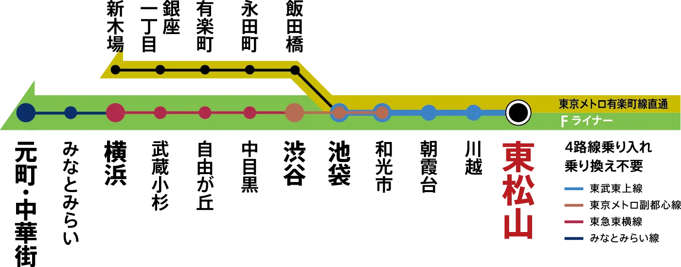 TJライナー、4路線直通運転のFライナーも利用可能。