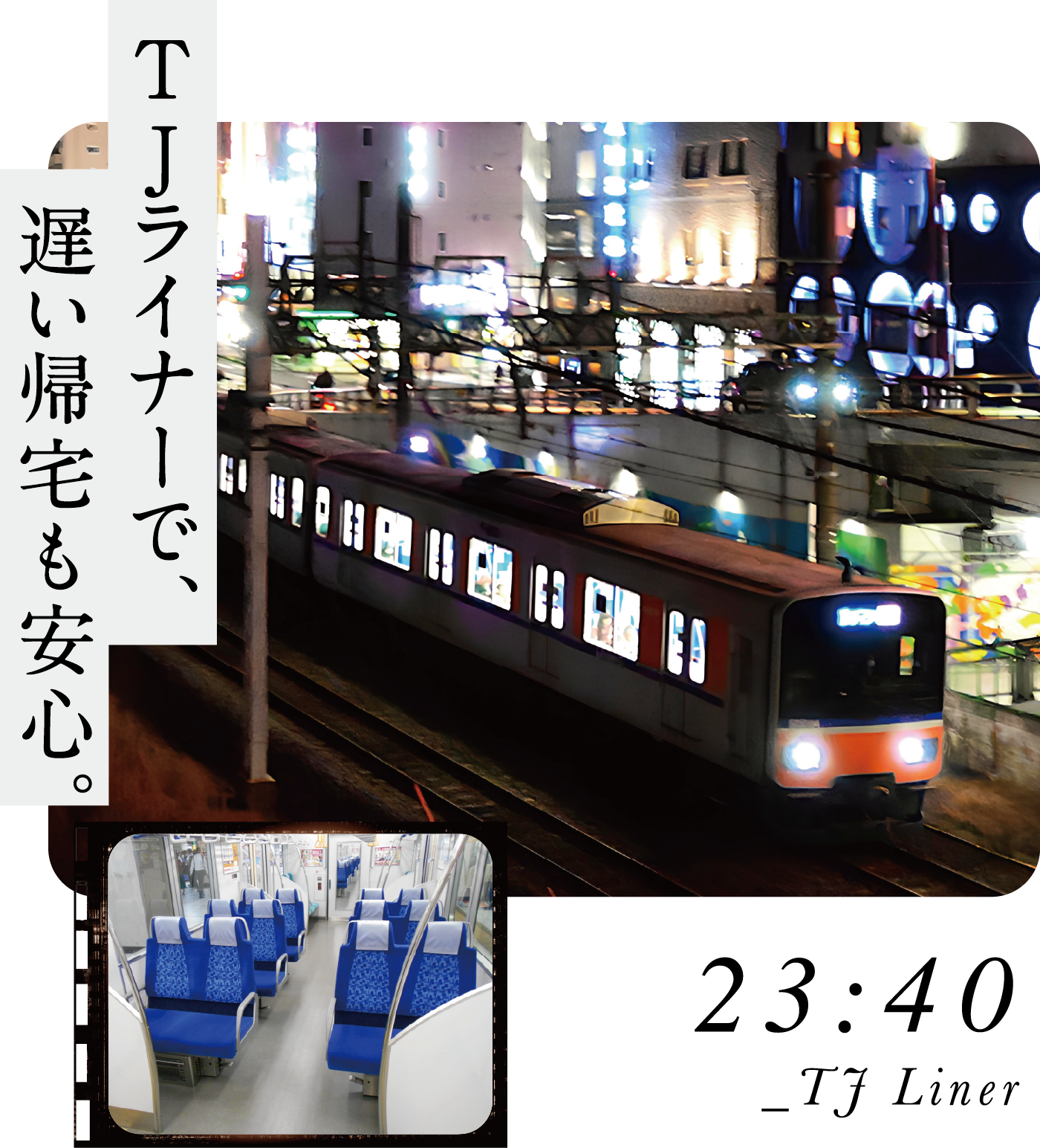 夜遅くまで安心して遊べたのは通勤時や帰宅時にTJライナーが利用できるから(※1)。「池袋」駅発の最終は23:58。全席指定でゆったり寛ぎながら約45分で「東松山」駅に帰ってきました。