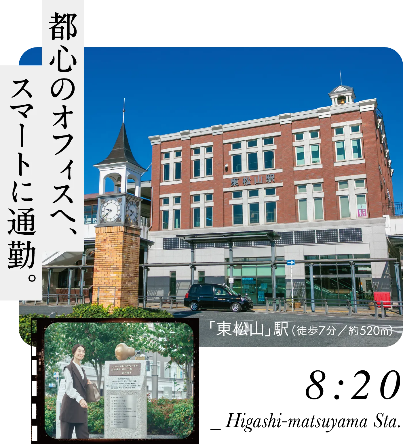 徒歩7分で東武東上線「東松山」駅へ。赤いレンガ造りの佇まいは東松山市が姉妹都市提携を結ぶオランダのナイメーヘン市の街並みをイメージしたとか。市の玄関口に相応しいこだわりが感じられます。