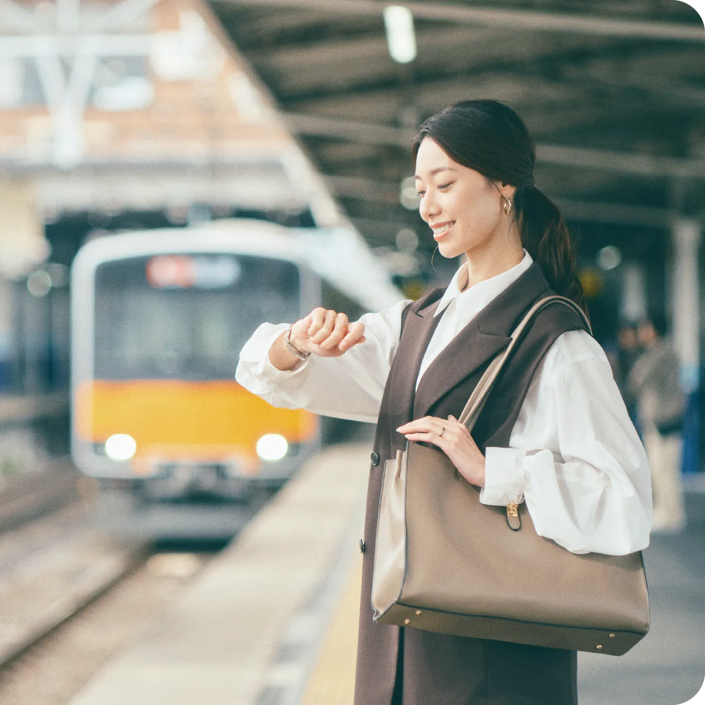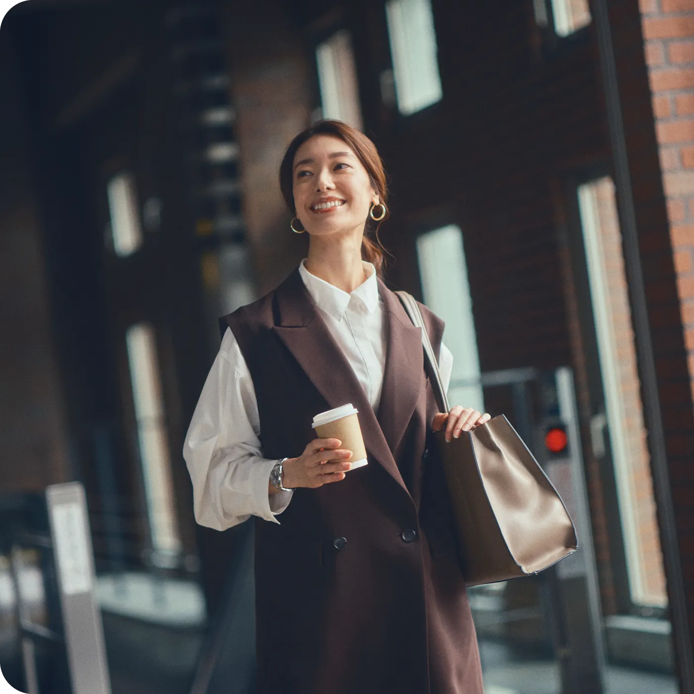 余裕を持って出かけるのが私の通勤スタイル。構内のコンビニエンスストアでコーヒーを買って温まりながらプラットフォームへ。忙しい毎日だからこそ、いつも心のゆとりを大切にしています。