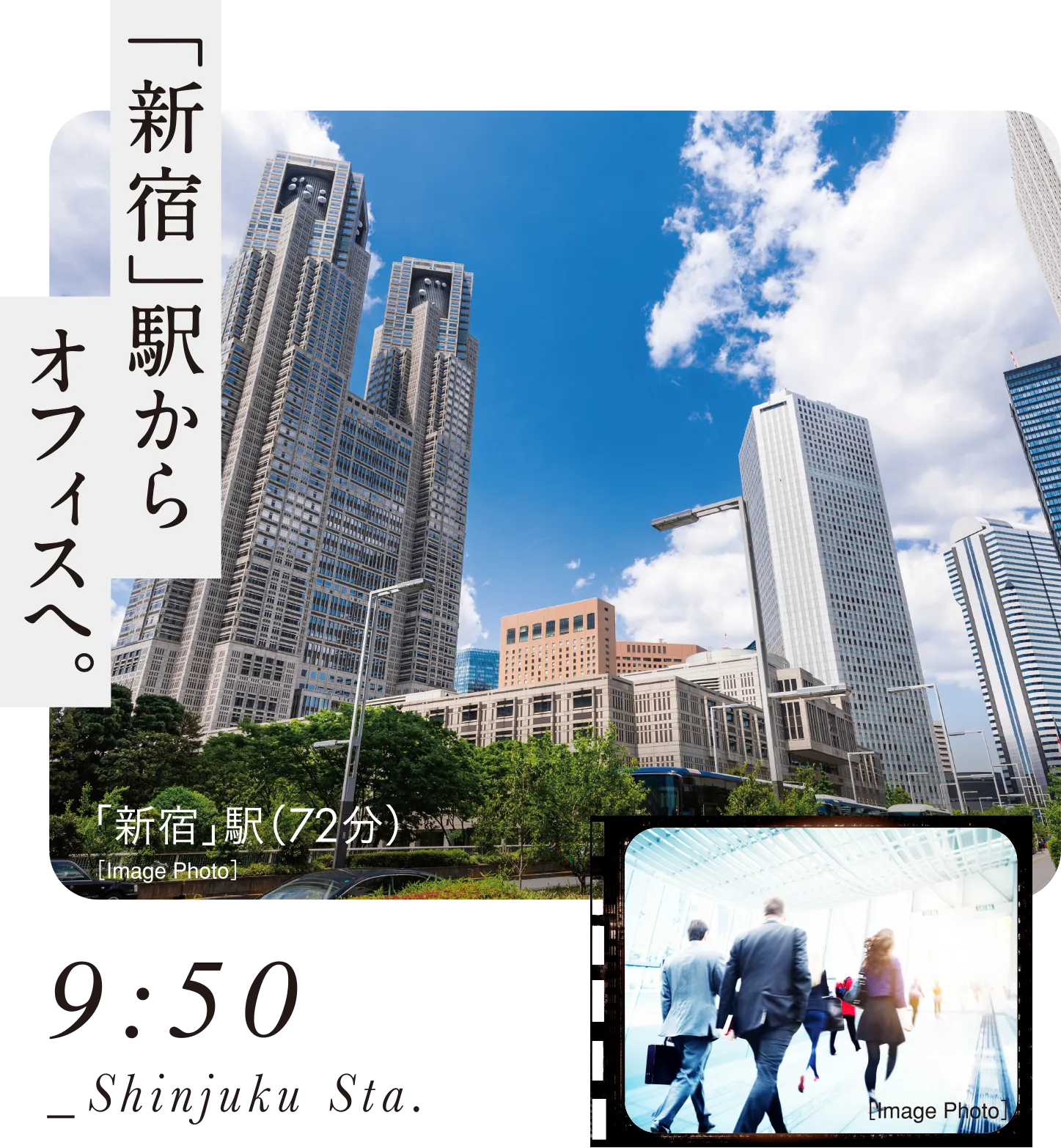 「池袋」駅からJR山手線に乗り換えて「新宿」駅へ。多彩な主要拠点へスムーズにアクセスできるのが便利です。フレックスタイムで10時に出勤し、気持ちを切り替えて1日の準備を始めました。