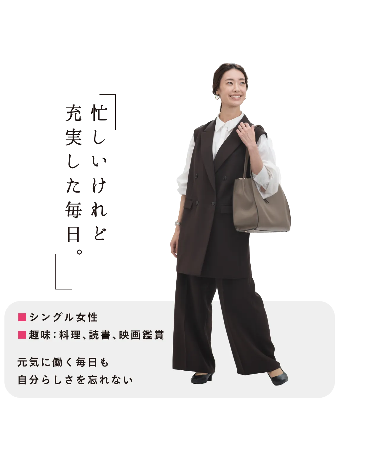 「シンプル」さを大切に、あらゆる自分を自由に楽しむ大人女性に似合うカジュアルなスタイルをご提案。様々なライフシーンを過ごす大人の女性に向けた「清潔感と品のあるシンプルさ」を持ったアイテムをラインアップしています。