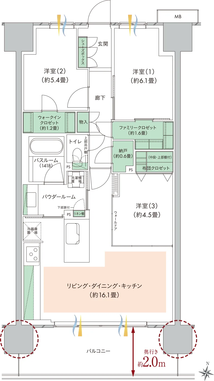 FC:ファミリークロゼット WIC:ウォークインクロゼット N:納戸