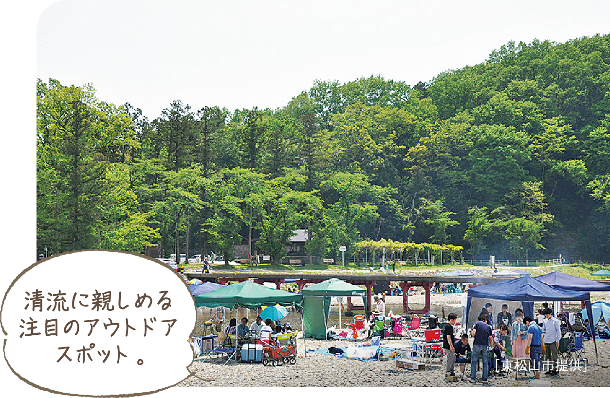 都幾川の清流と緑豊かな自然に包まれた、川遊びなどが楽しめるスポット。事前予約をすれば手ぶらでバーベキューが楽しめます。