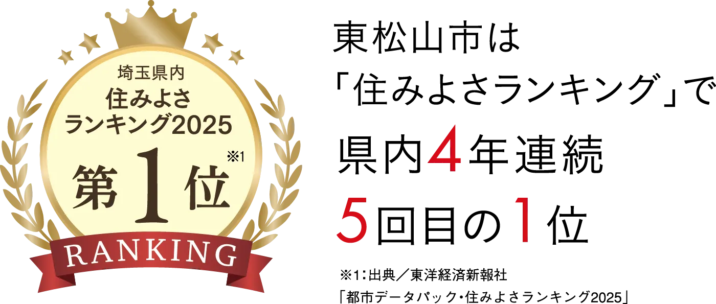 東洋経済新報社「都市データパック・住みよさランキング」で4年連続埼玉県内1位を獲得した東松山市。