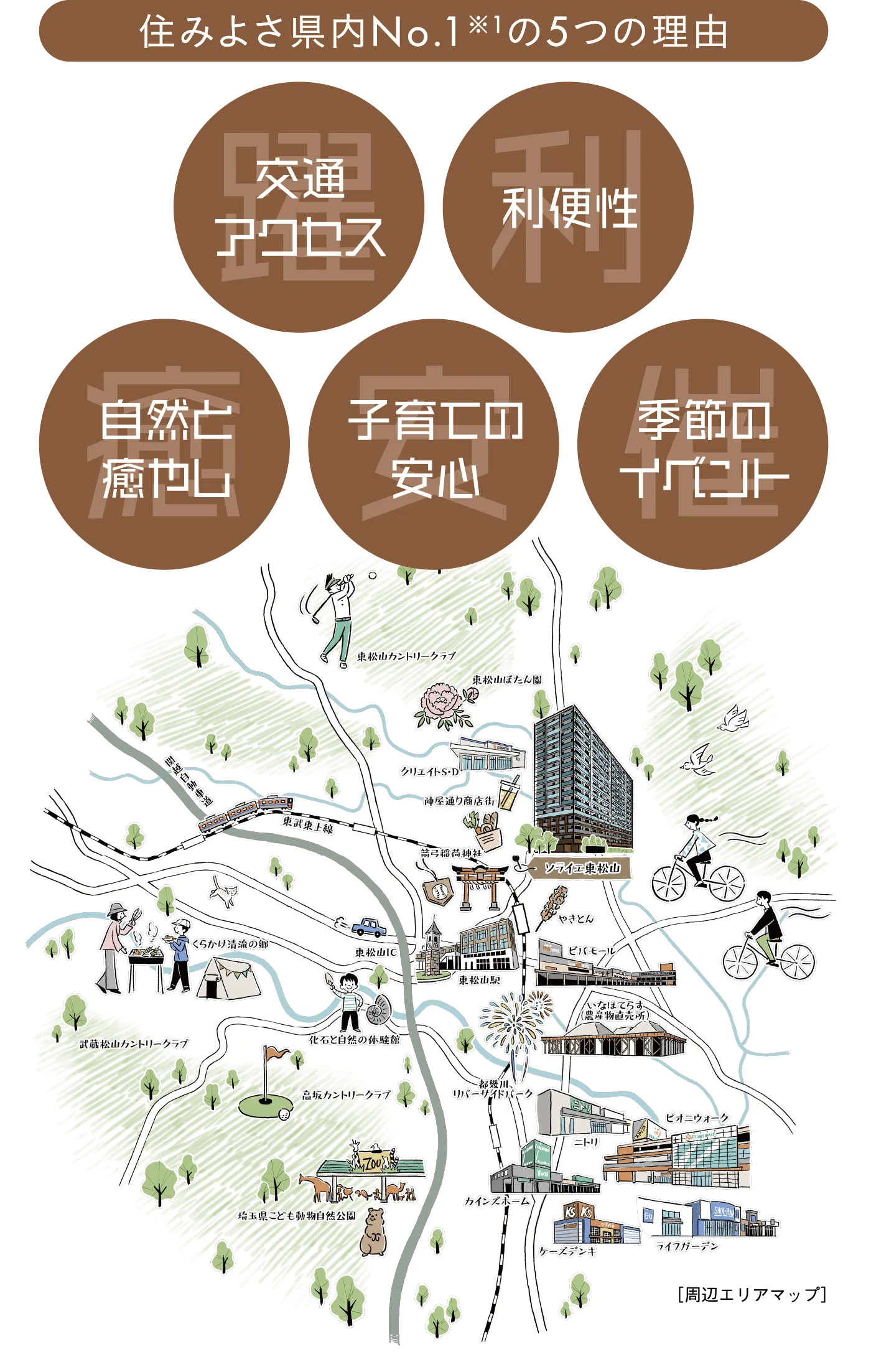 特に「利便度」と「快適度」の評価が高く、利便性と安らぎが調和した住環境であることを物語っています(※1)。