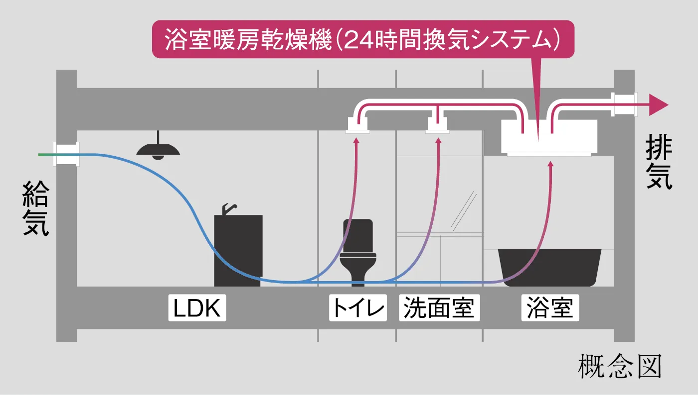 冬の日のバスタイムの暖房など多機能を搭載。浴室乾燥機能が湿気の多い季節でも、浴室内を乾燥させカビの発生を抑制。雨の日などには衣類の乾燥機として活躍します。