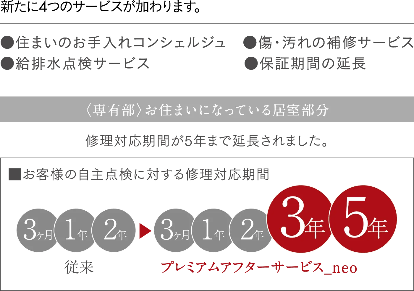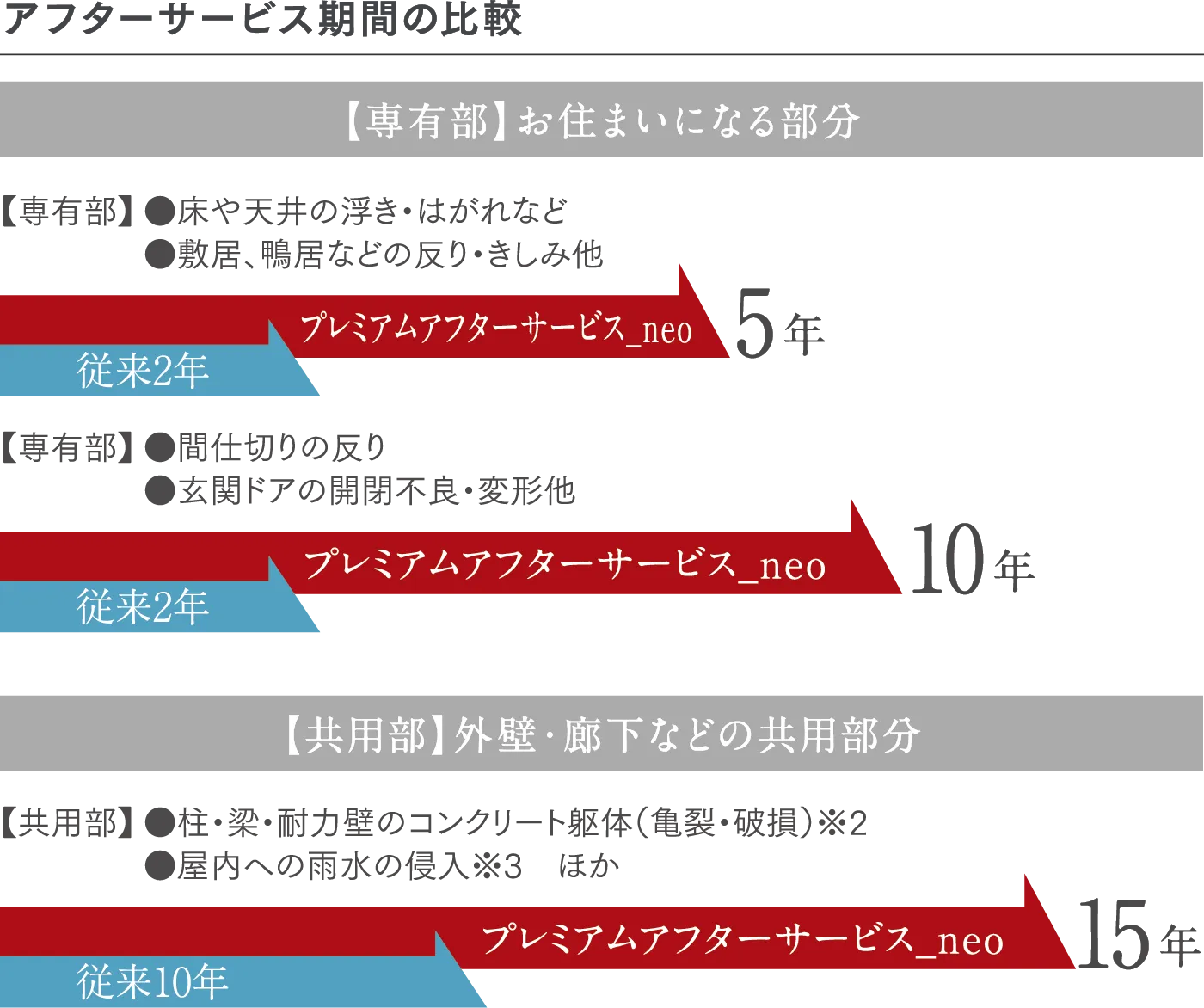 専有部、共有部ともアフターサービスの保証期間を大幅に延長しました。