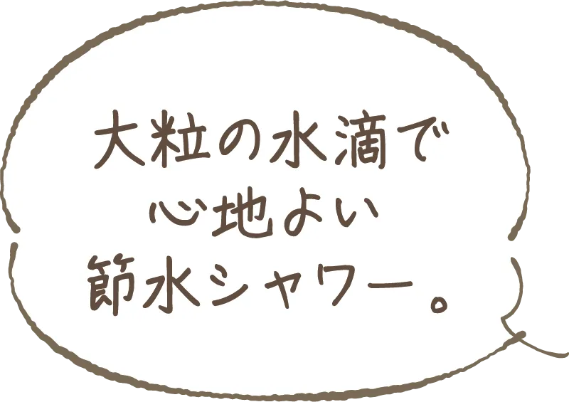水滴にたっぷりの空気を含ませることで、ボリュームのある浴び心地と節水を実現しました。吐水・止水はワンプッシュで簡単。