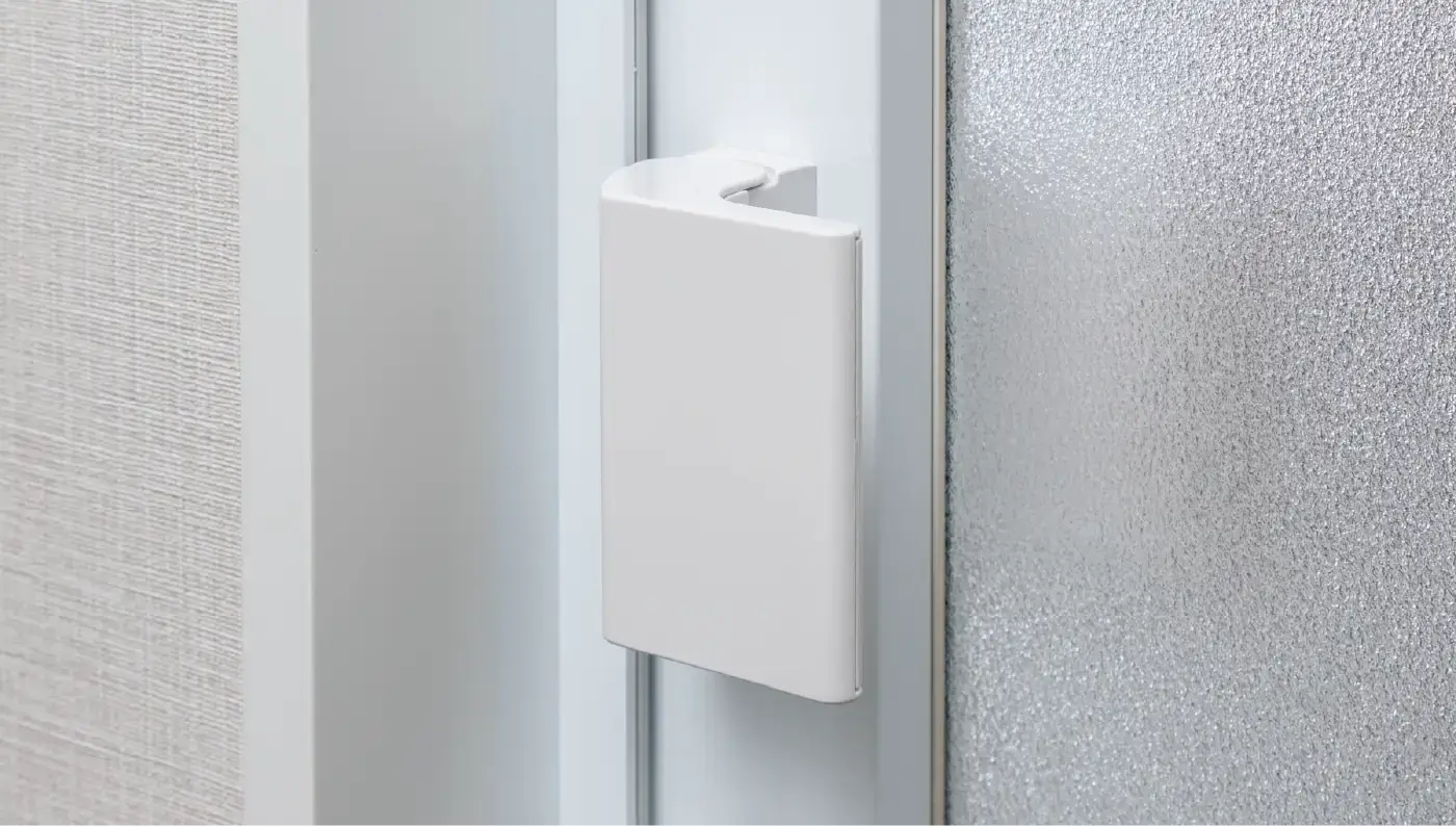 浴室側のゴムパッキンをなくし、汚れが溜まりやすいドア下部のガラリをタテ枠に配置しました。