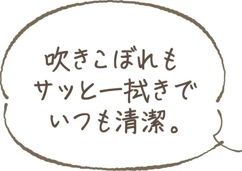 キッチンやダイニングの床や壁への油のはねを抑え、清潔さを高めます。※一部住戸除く
