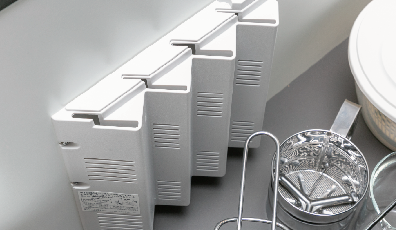 デッドスペースを有効に活用した包丁差し。かがまずに包丁がスムーズに取り出せます。