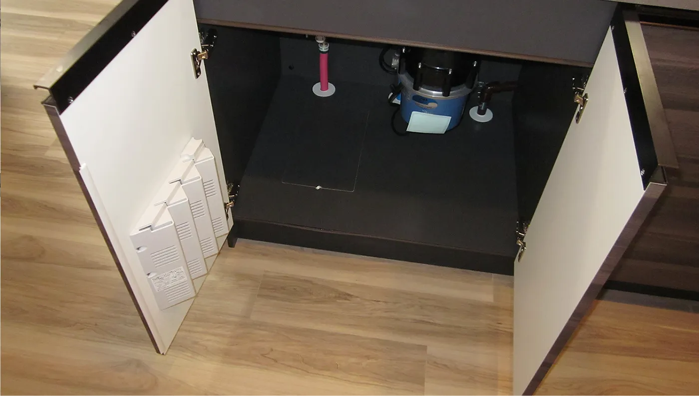 家族の末永い暮らしを託す住まいに防災対策は欠かせません。万が一、断水などのライフラインがストップした際も生活環境が維持できるように、その先を見据えた防災備品を保管。住まう方々の暮らしを守るよう配慮しています。