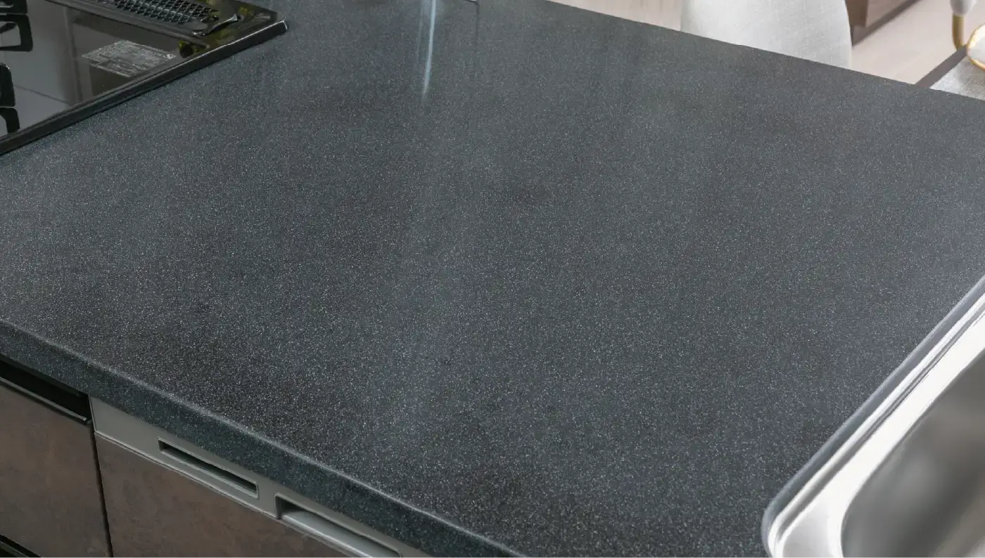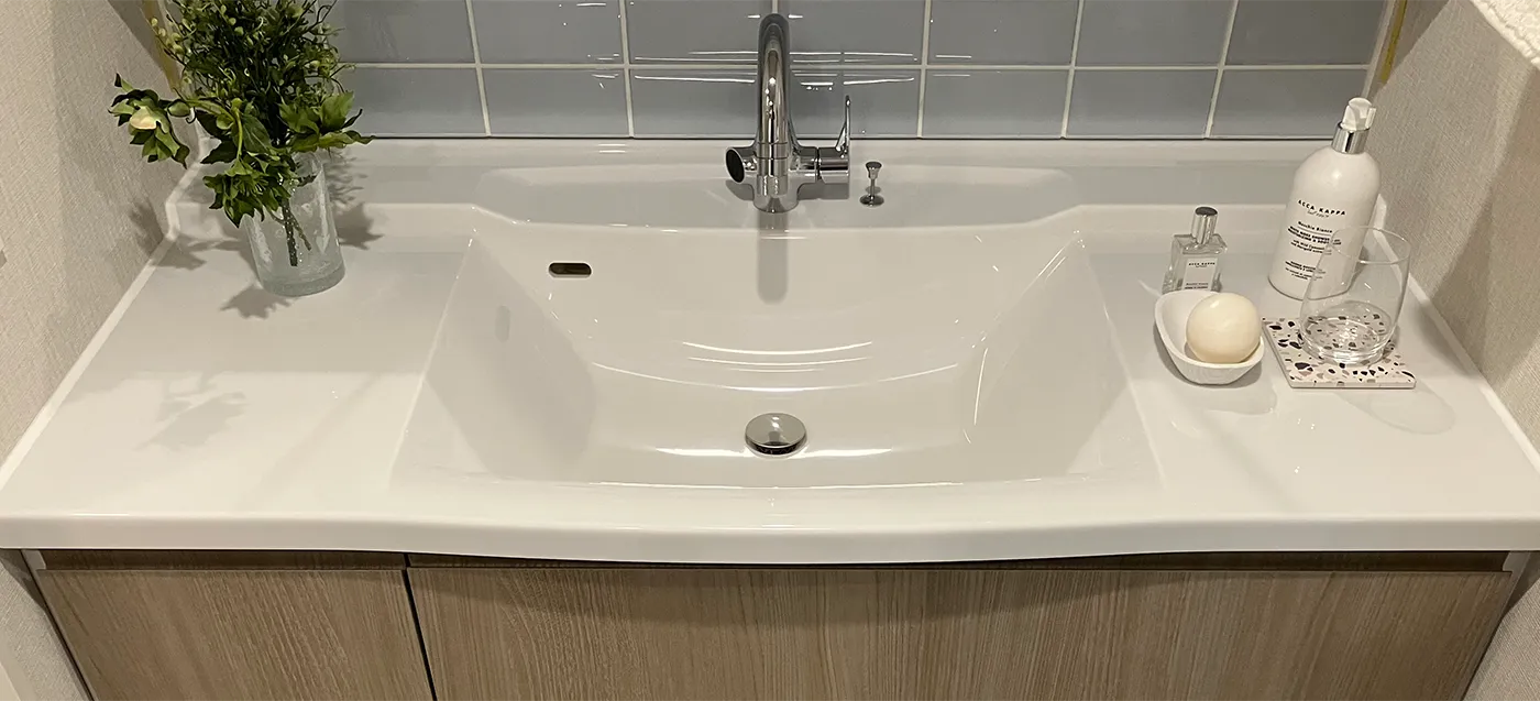 キッチン天板は洗練された人造大理石を採用。傷などもつきにくくお手入れも簡単です。