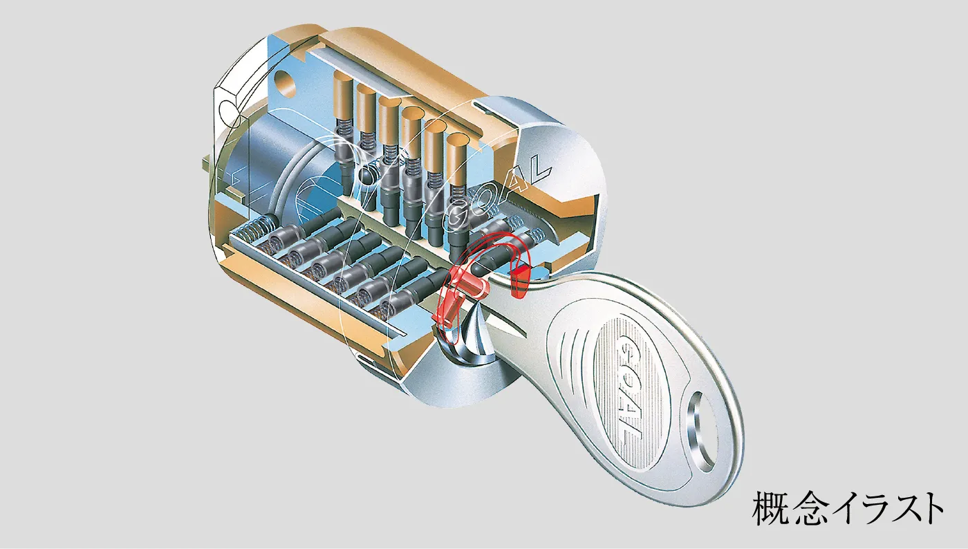 約120億通りの鍵違いパターンがあり、不正解錠に対して高い防犯性を発揮します。