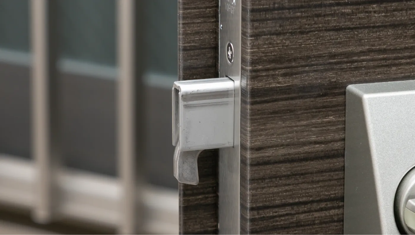 バール等での扉のこじ開け対策に、金具が受け部と噛み合い防犯性を発揮します。