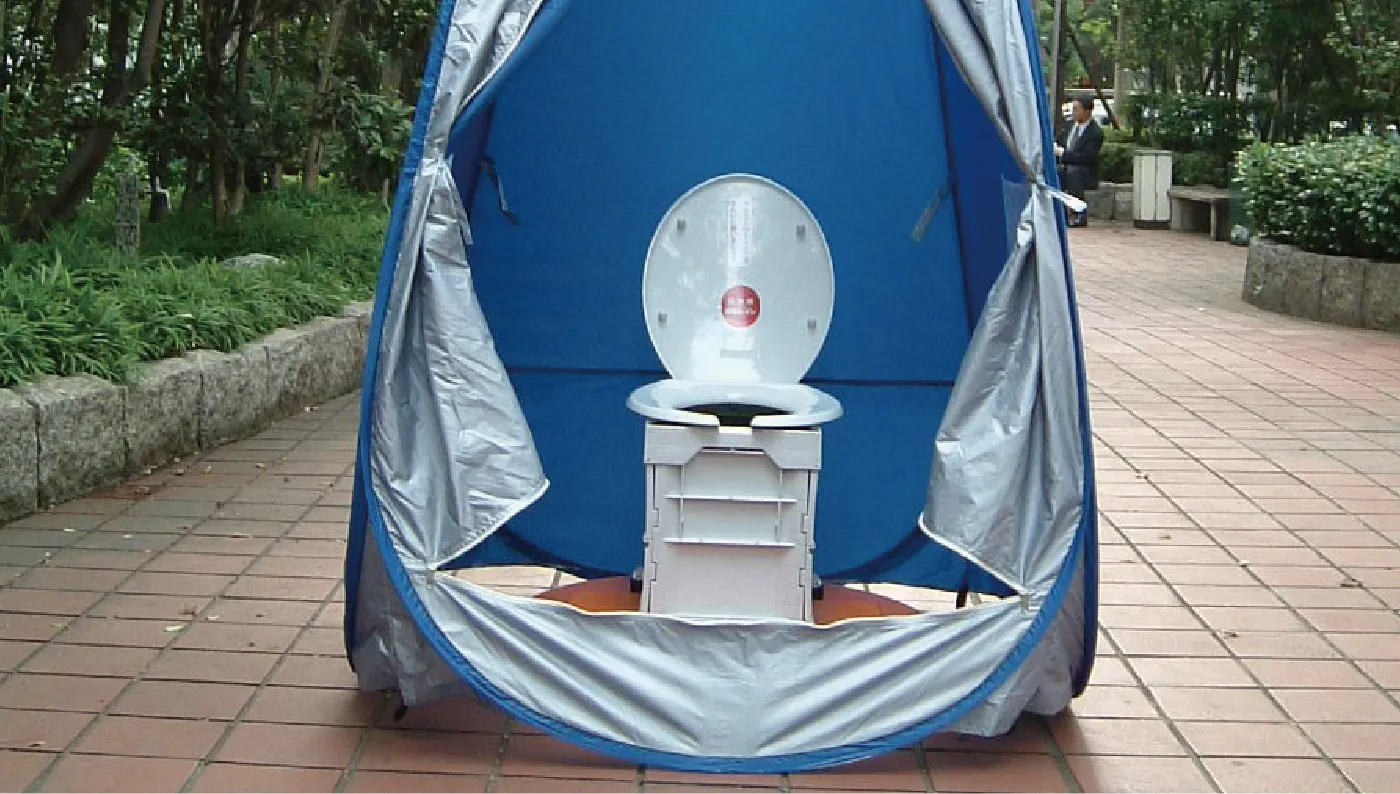 マンホール上に設置するだけで簡単に組み立てられ、断水や停電時でも使用できます。