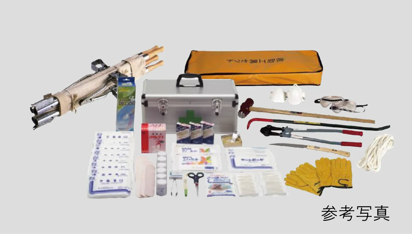 1階の防災倉庫には、いざというときのための様々な防災備品を保管しています。