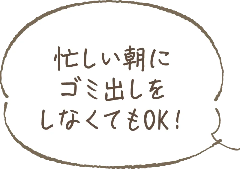 敷地内にゴミ置場を設置しています。ゴミ出しは24時間いつでも可能で、収集日を待ってゴミを貯めておく必要がなく、住まいをいつもすっきり清潔に保てます。