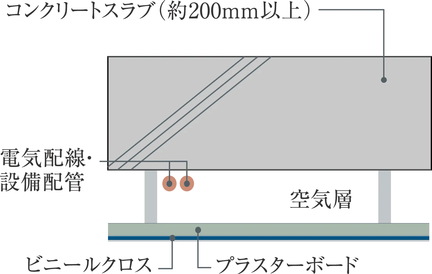 配管・配線スペースを確保することにより、将来的なメンテナンスに配慮しています。