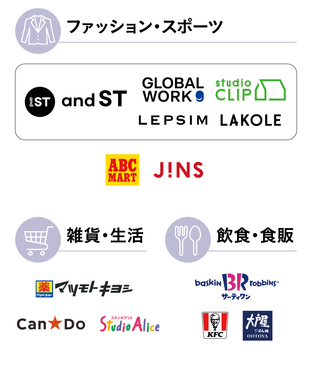 「ピオニウォーク東松山」の周辺には「ケーズデンキ」・「ニトリセキチュー」・「蔦屋書店」などの大型店舗が集積。「ピオニウォーク東松山」でショッピングを楽しみながら手軽に立ち寄れ、欲しいアイテムが揃います。