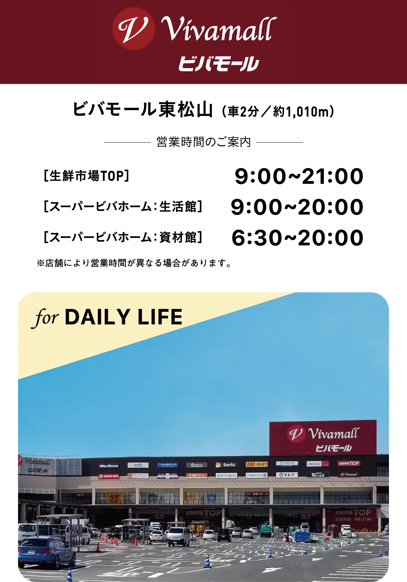「ビバモール東松山」は、日用品や建築資材などを揃えたホームセンター「スーパービバホーム」と生活に便利な店舗が集結したショッピングモールです。スーパーマーケットから生活用品、グルメまで揃い豊かな暮らしをサポートします。